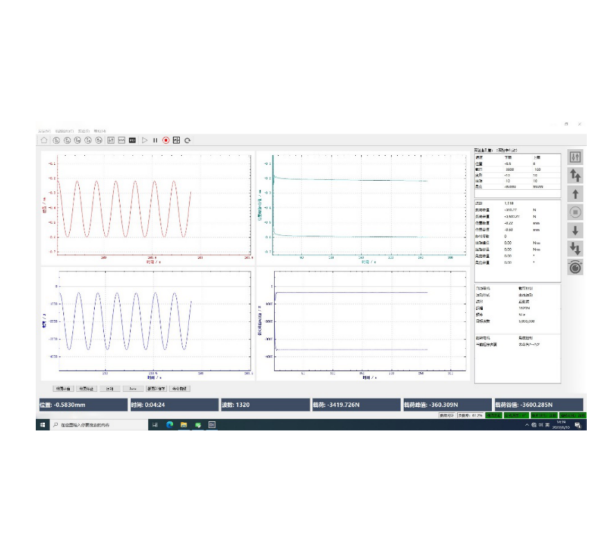 2.軟體畫面可顯示設定值及實際值,即時顯示測試曲線(荷重-時間、位移-時間、荷重-位移等)